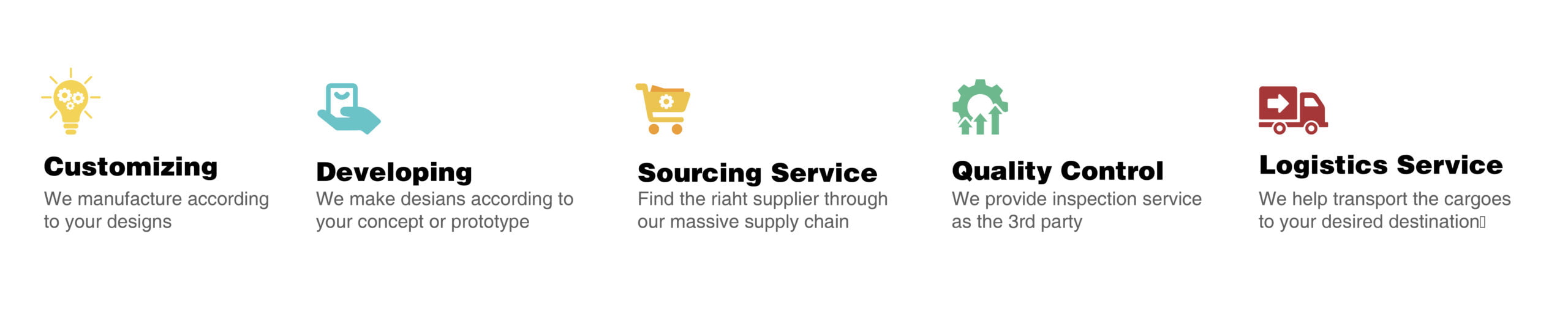 Our reliable team is ready and waiting to support you in supply chain resources to provide customers with products customization, development, sourcing, inspection, and logistics services.