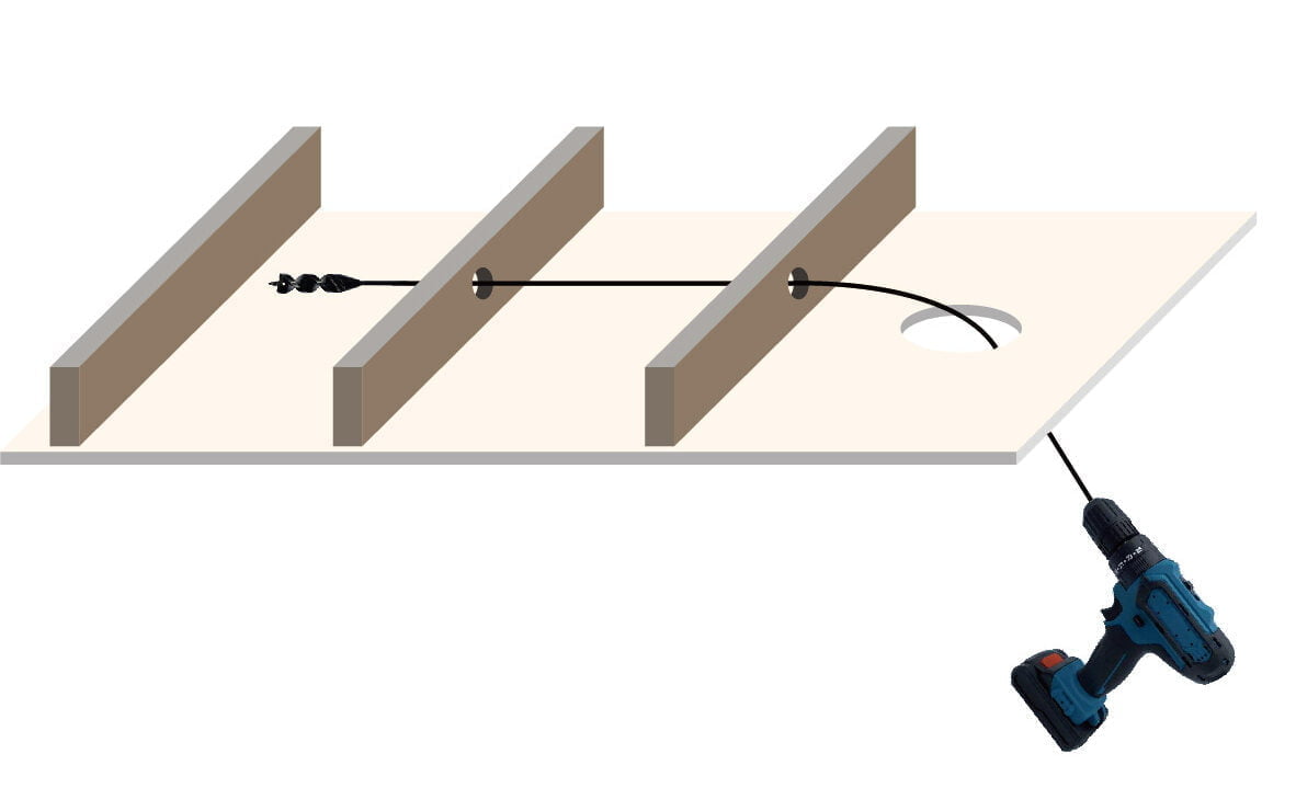 It is designed to flexible drill wood and pull wire behind wall.